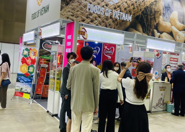 Khách tham quan triển lãm Seoul Food 2022 tìm hiểu sản phẩm của Công ty Cổ phần Quốc tế Bảo Hưng.